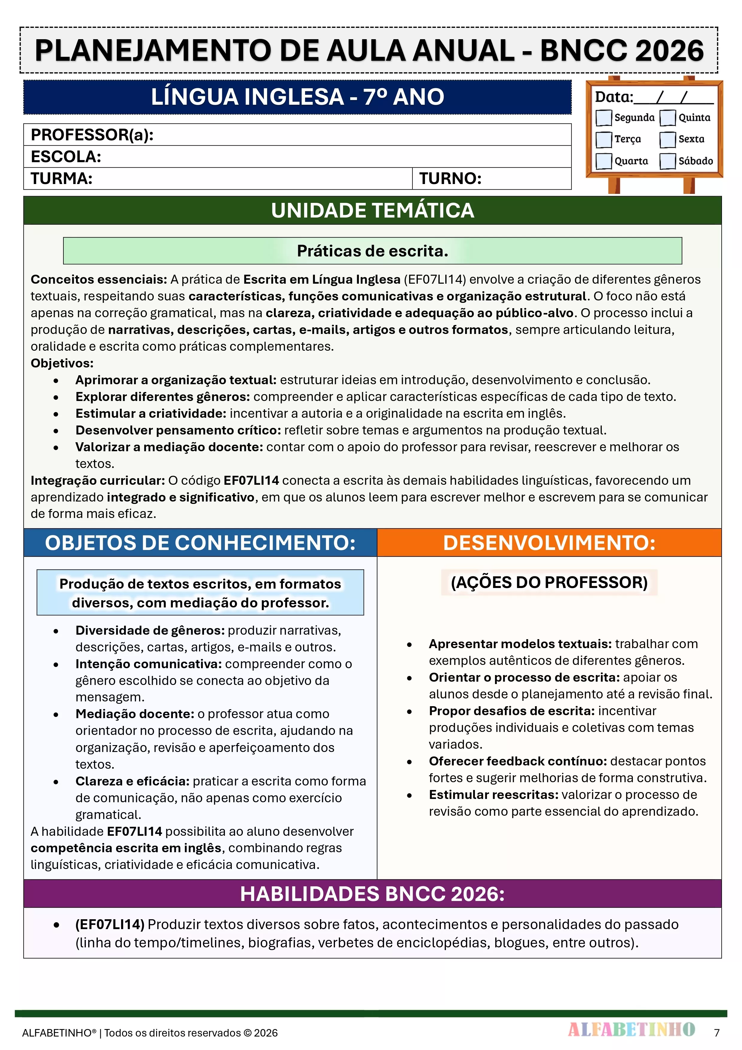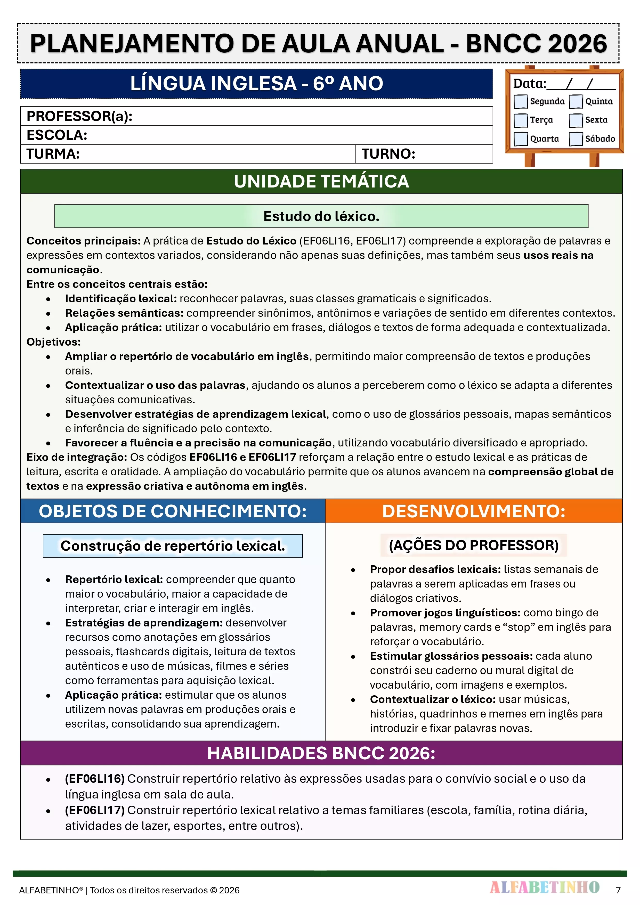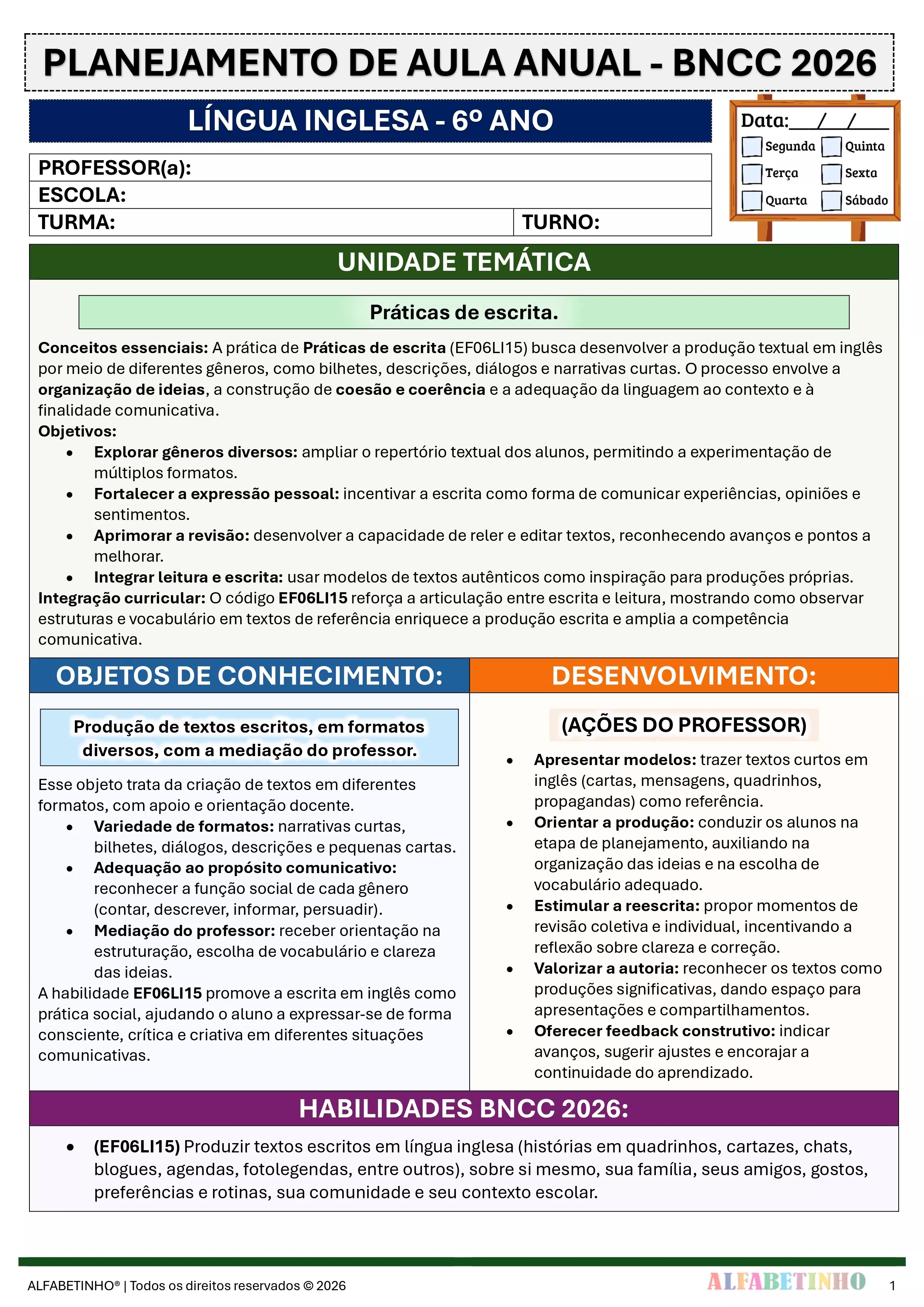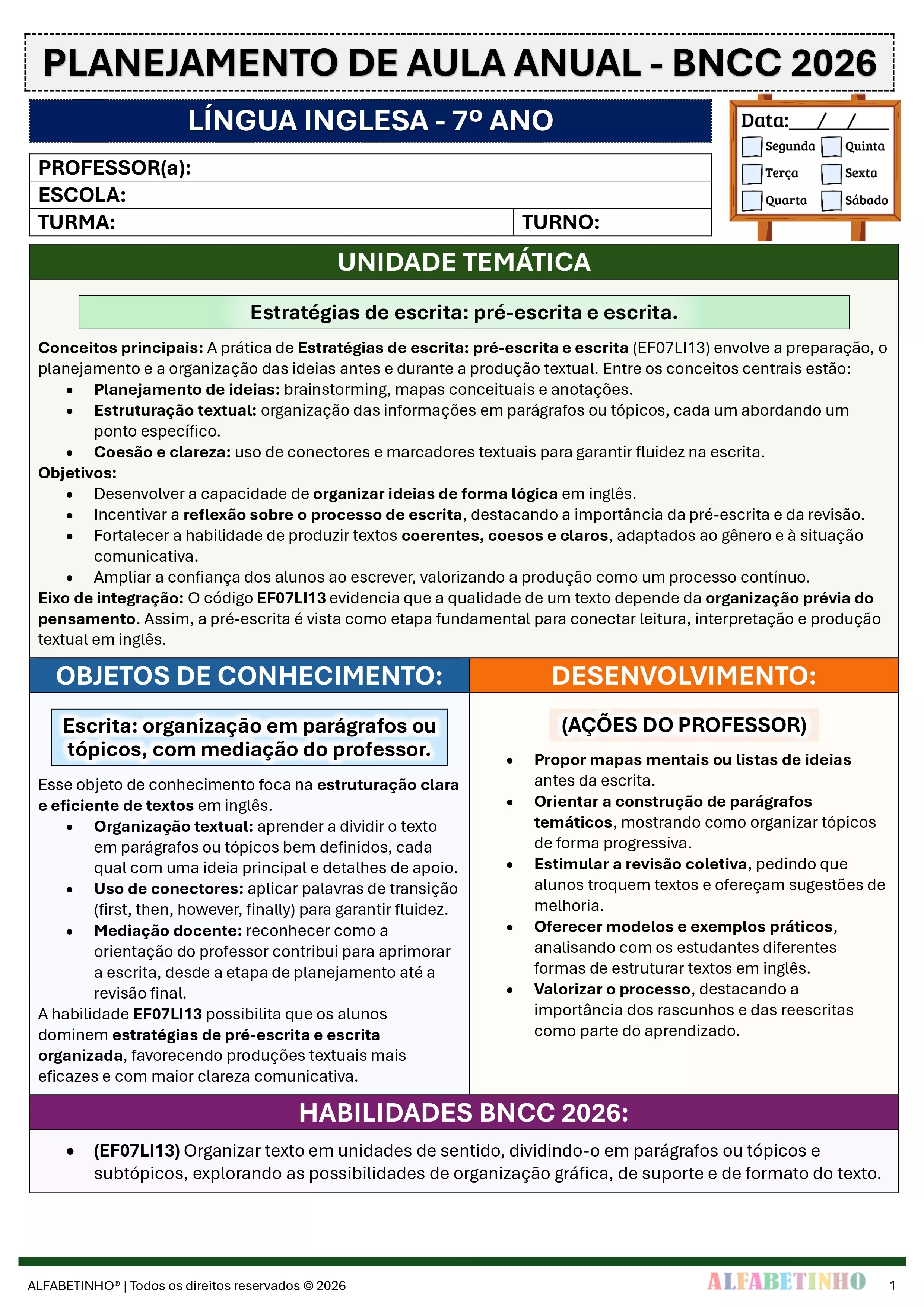 Desenvolvido com base nas diretrizes da Base Nacional Comum Curricular 2026, garantindo o alinhamento com as exigências educacionais atuais.