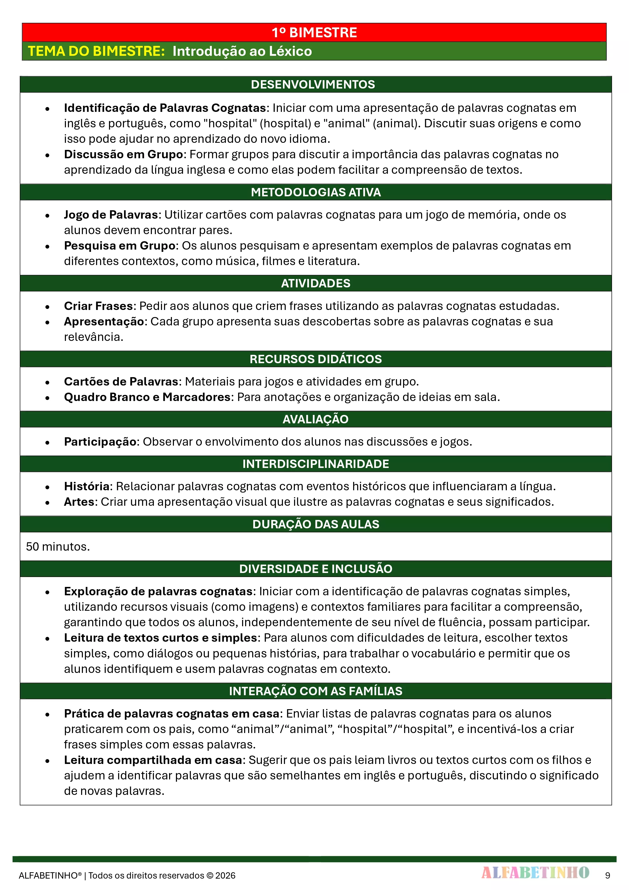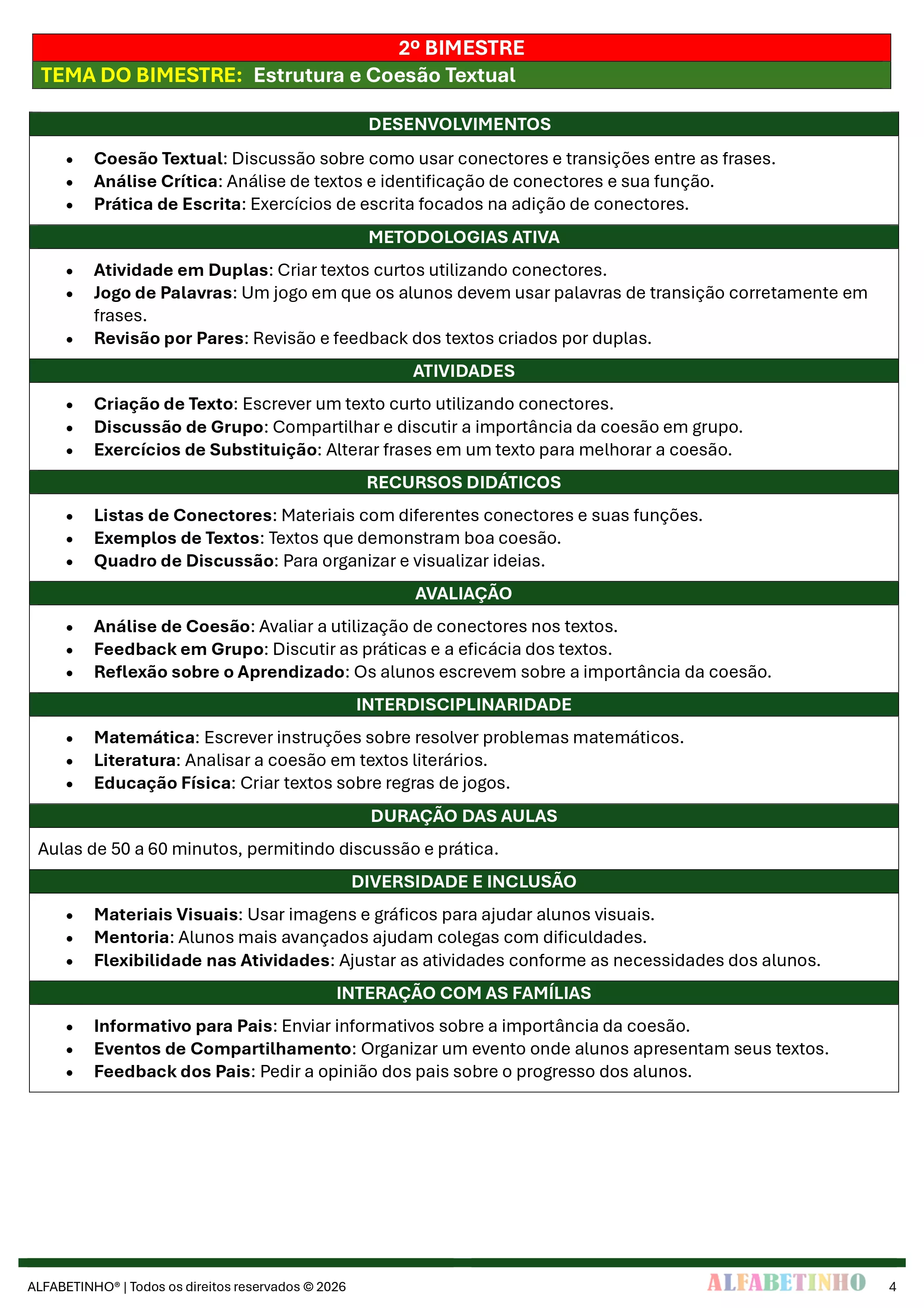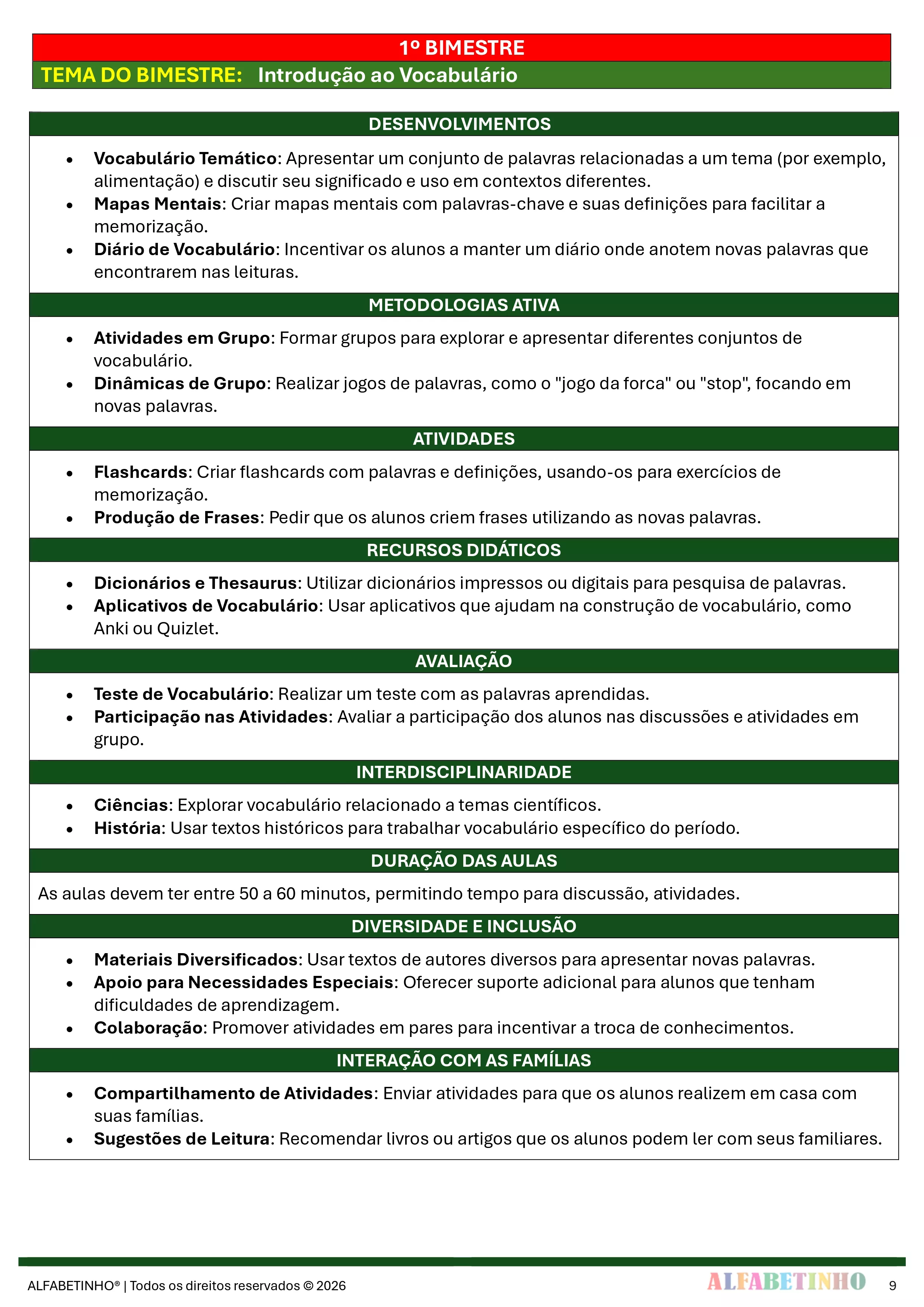 ✓ Planos Anuais e Bimestrais, prontos e editáveis em Word;