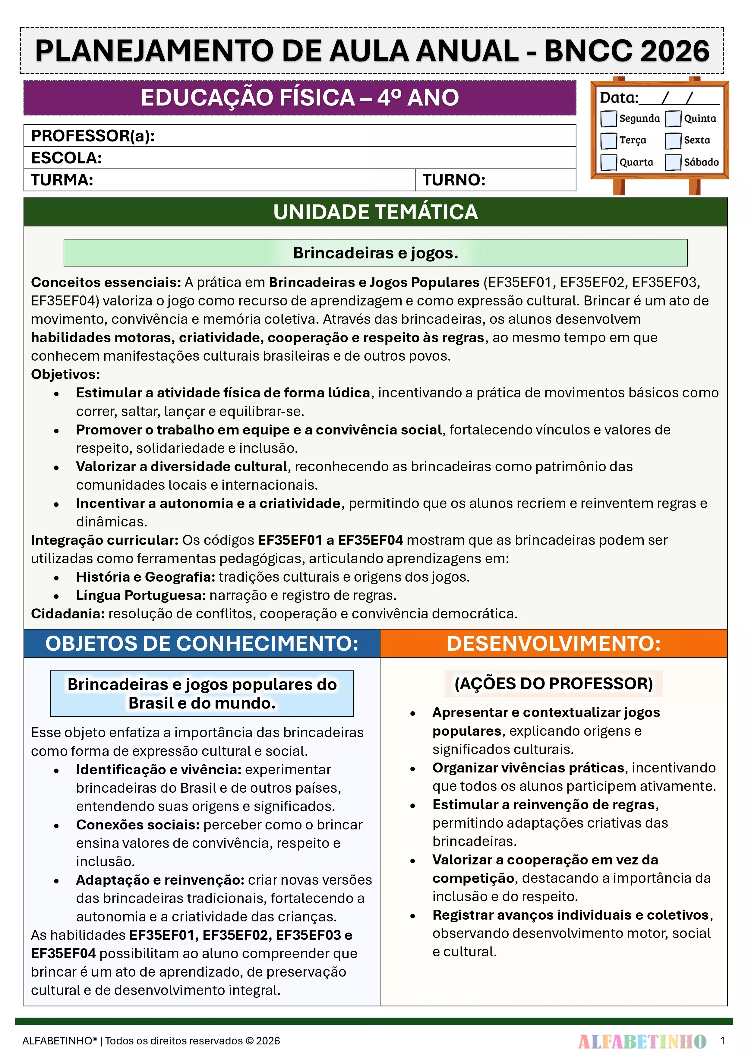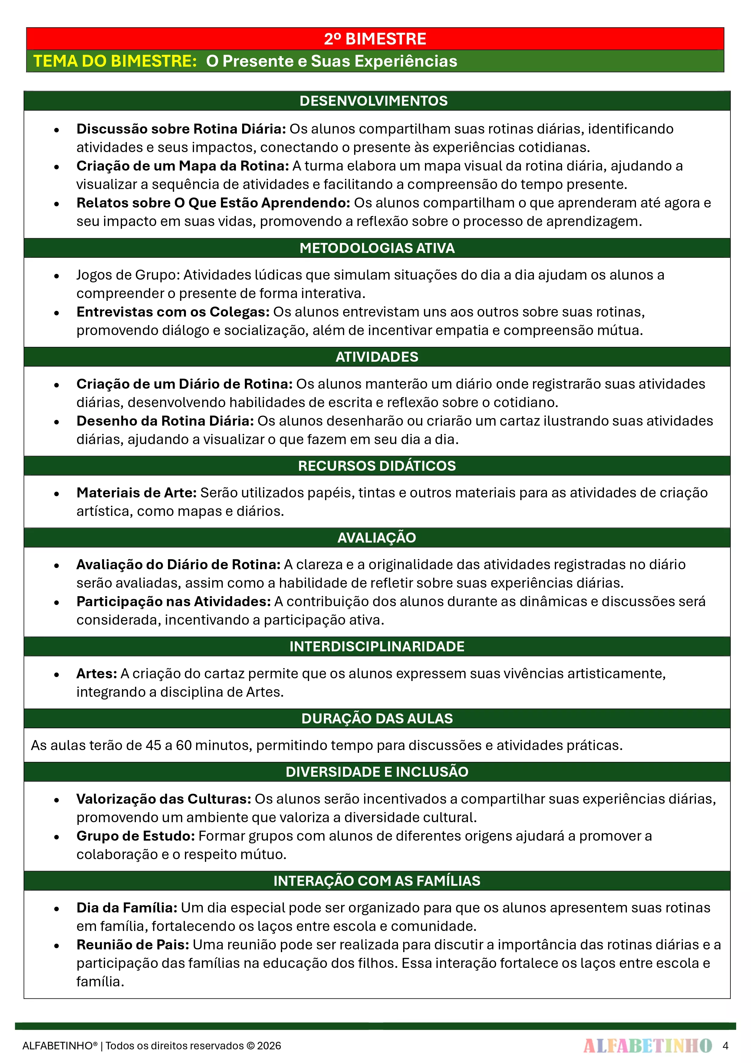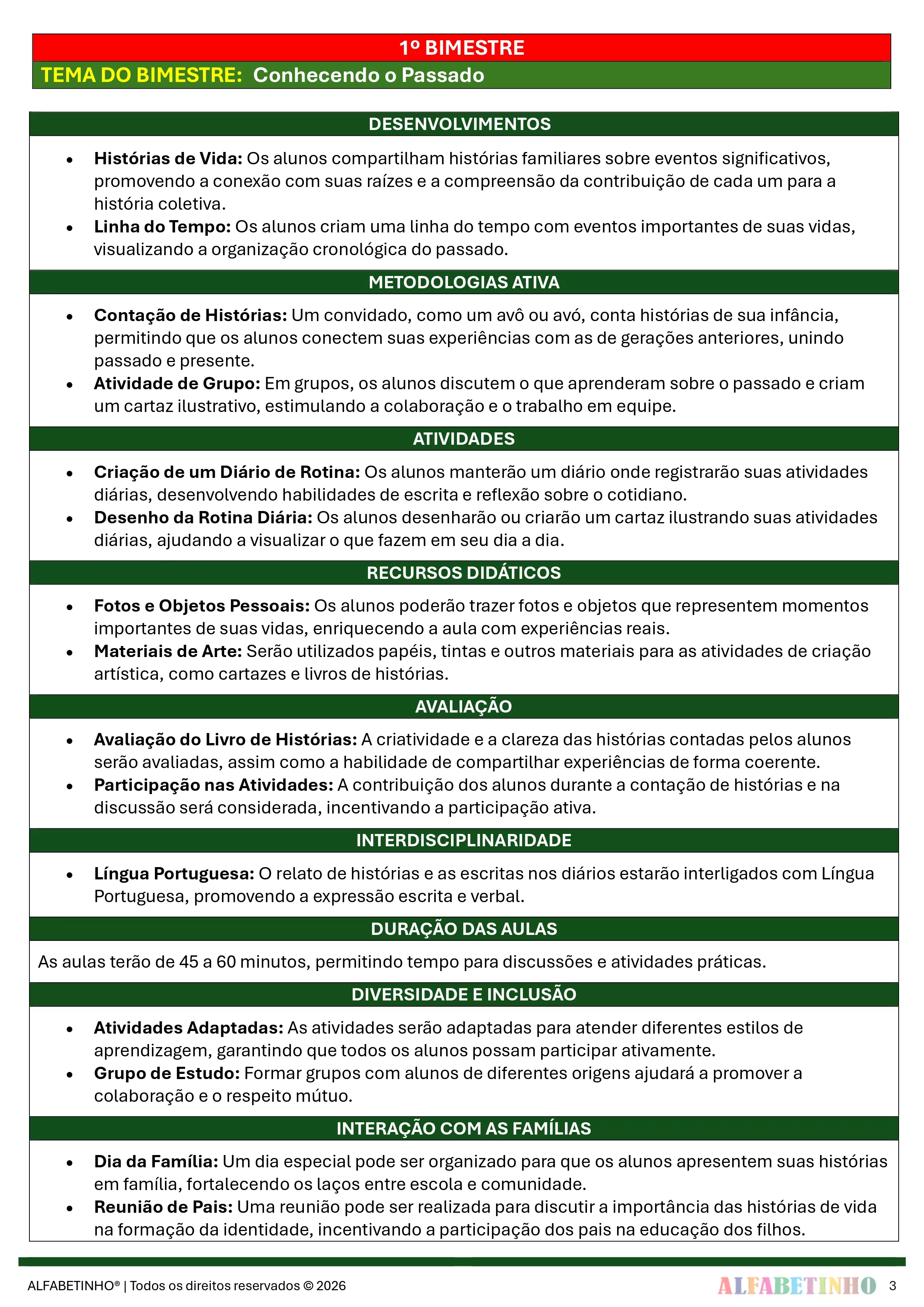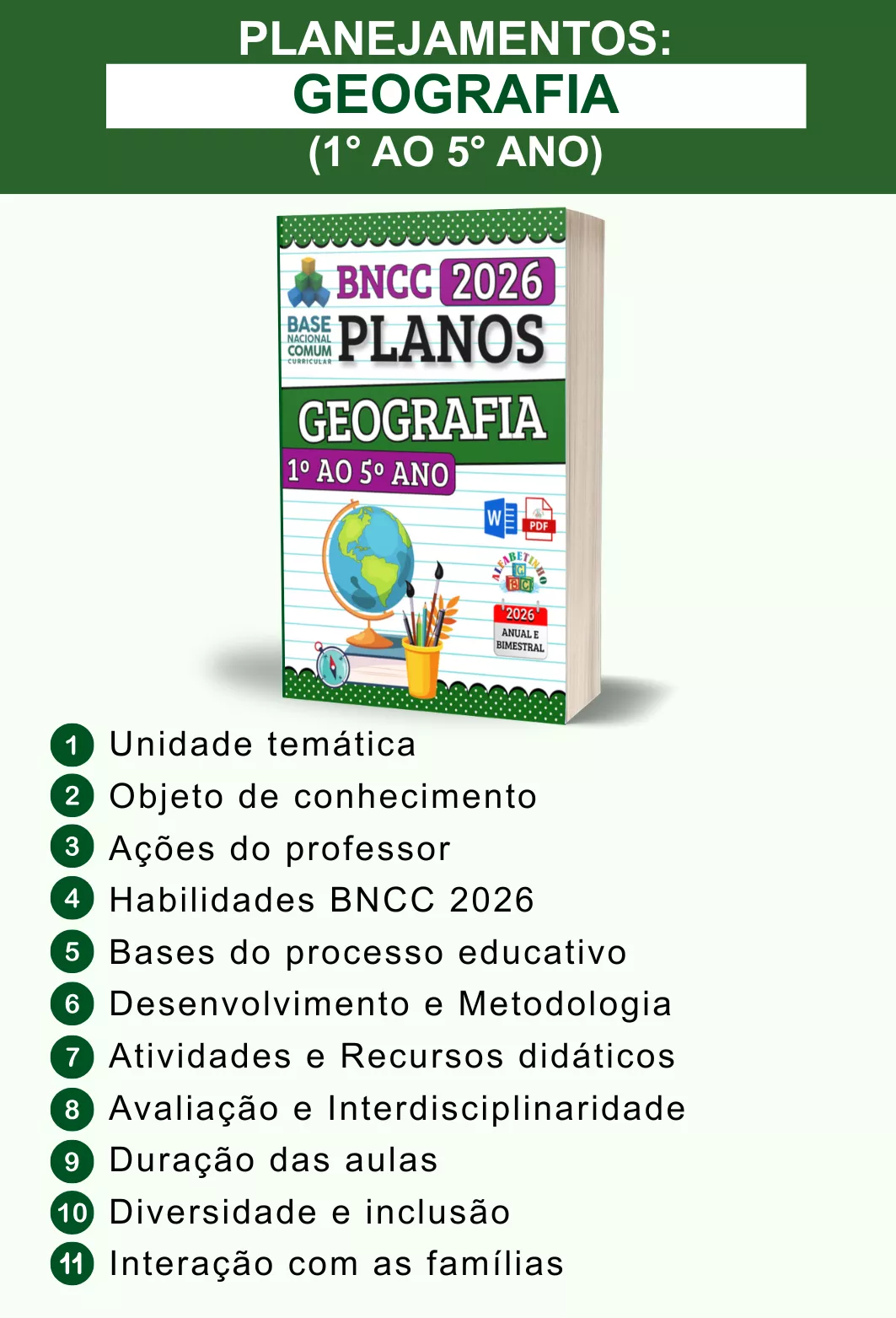 ✓ Planos Anuais e Bimestrais, prontos e editáveis em Word;