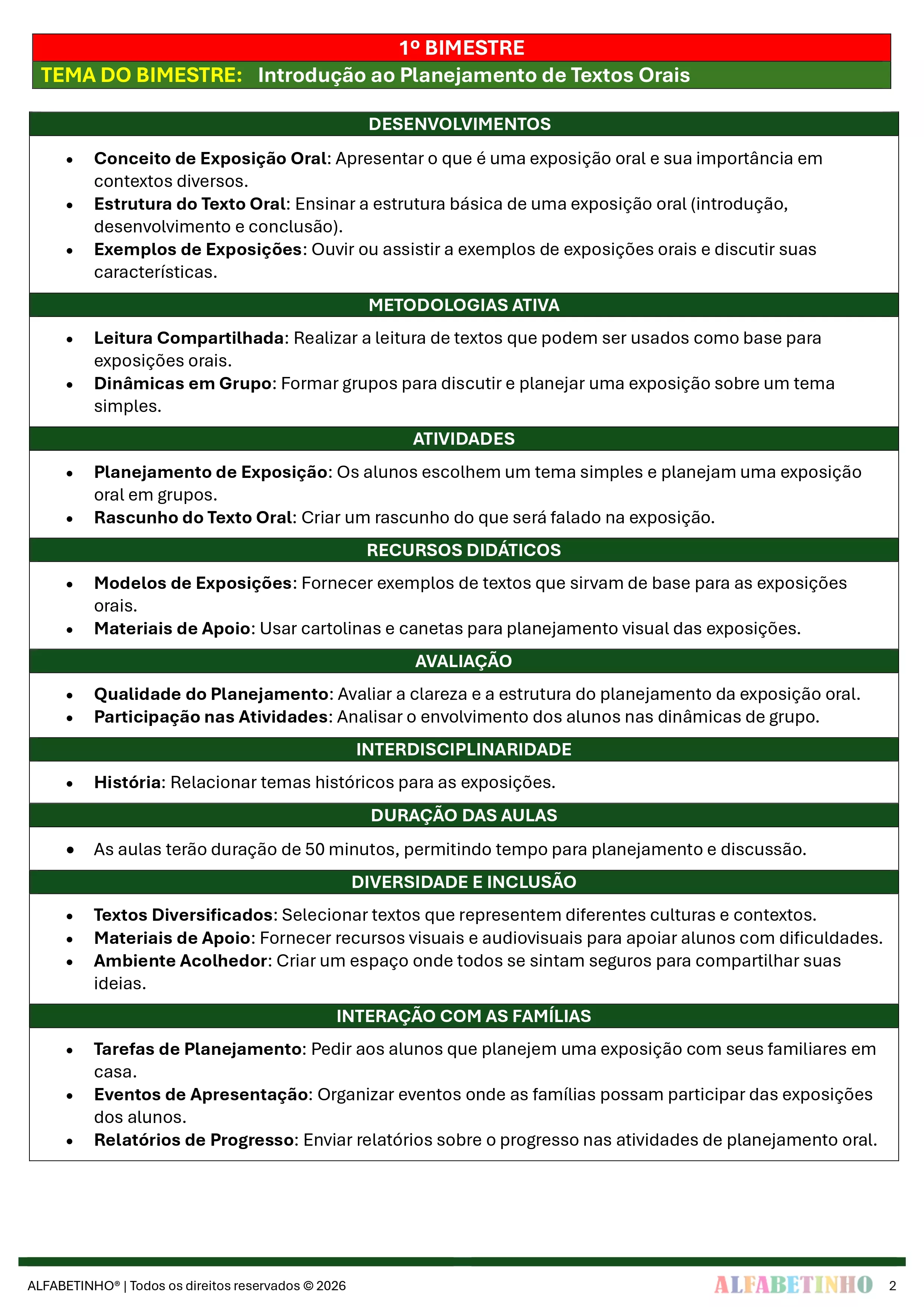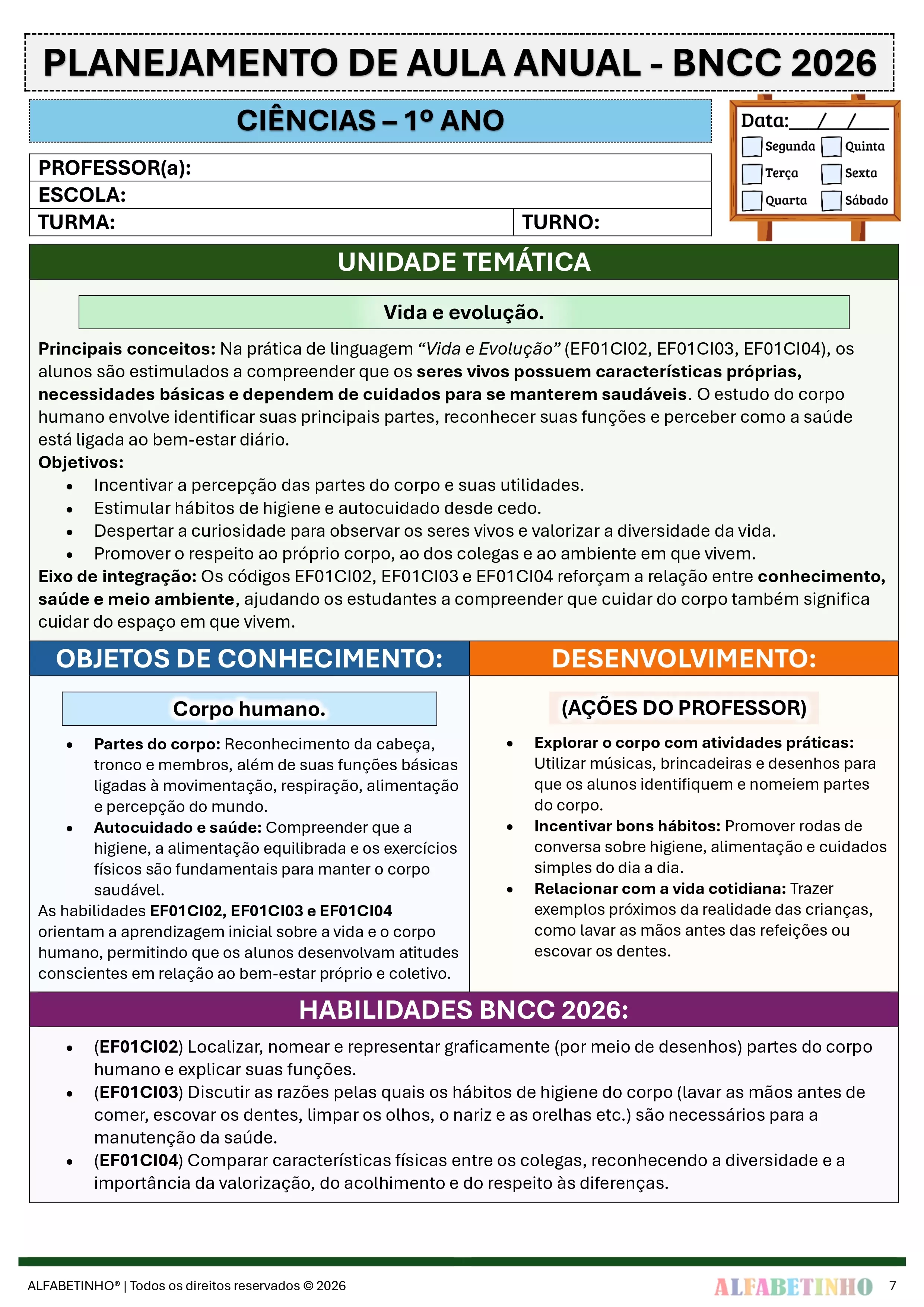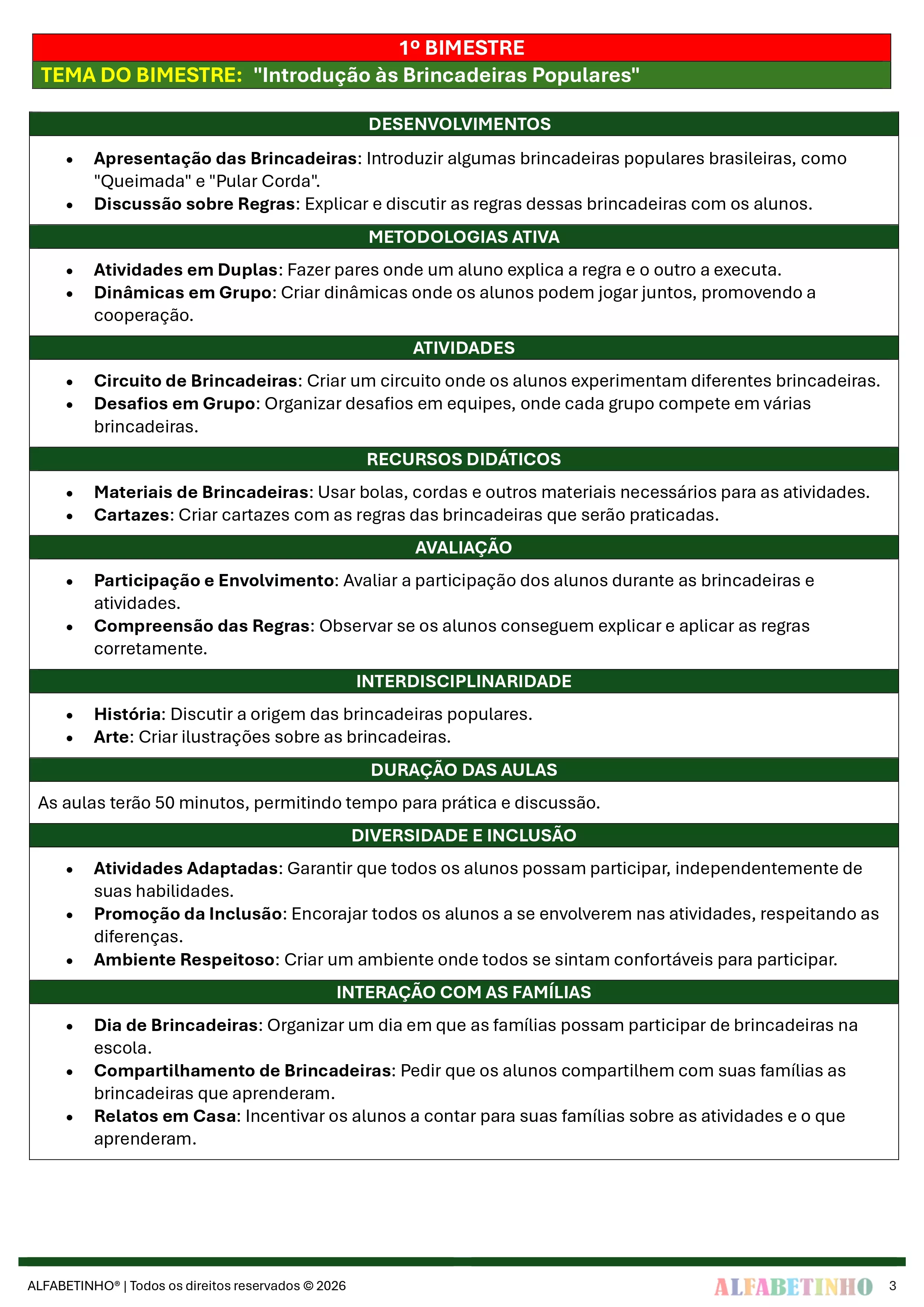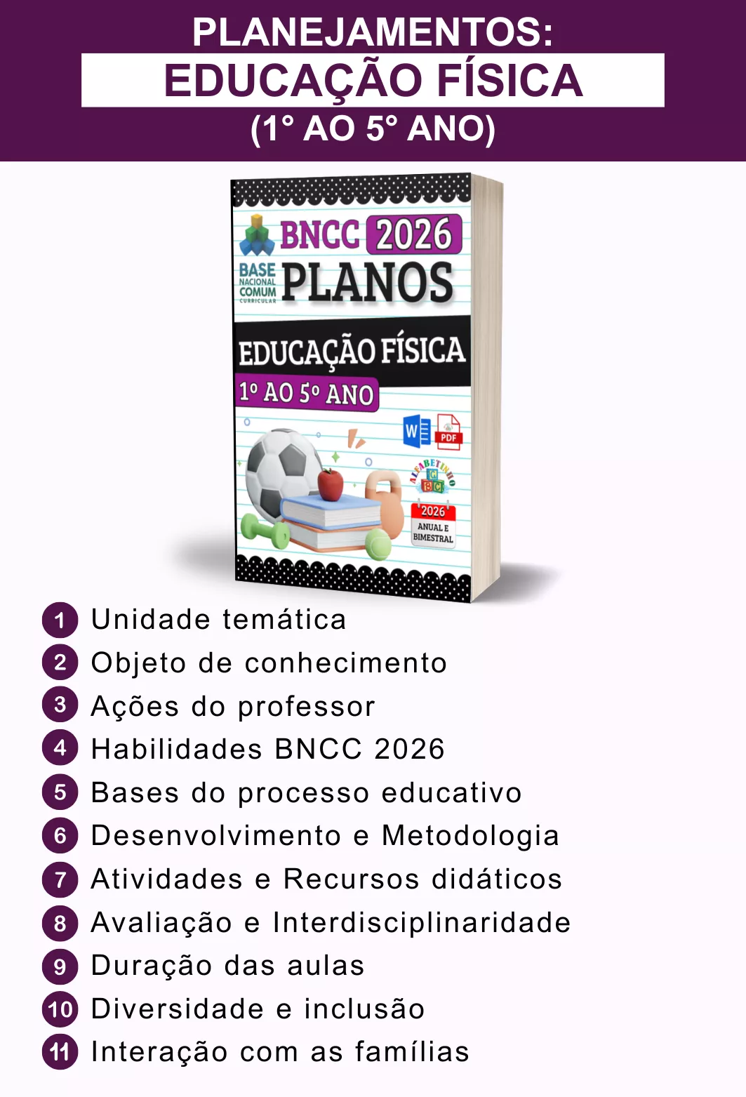✓ Planos Anuais e Bimestrais, prontos e editáveis em Word;