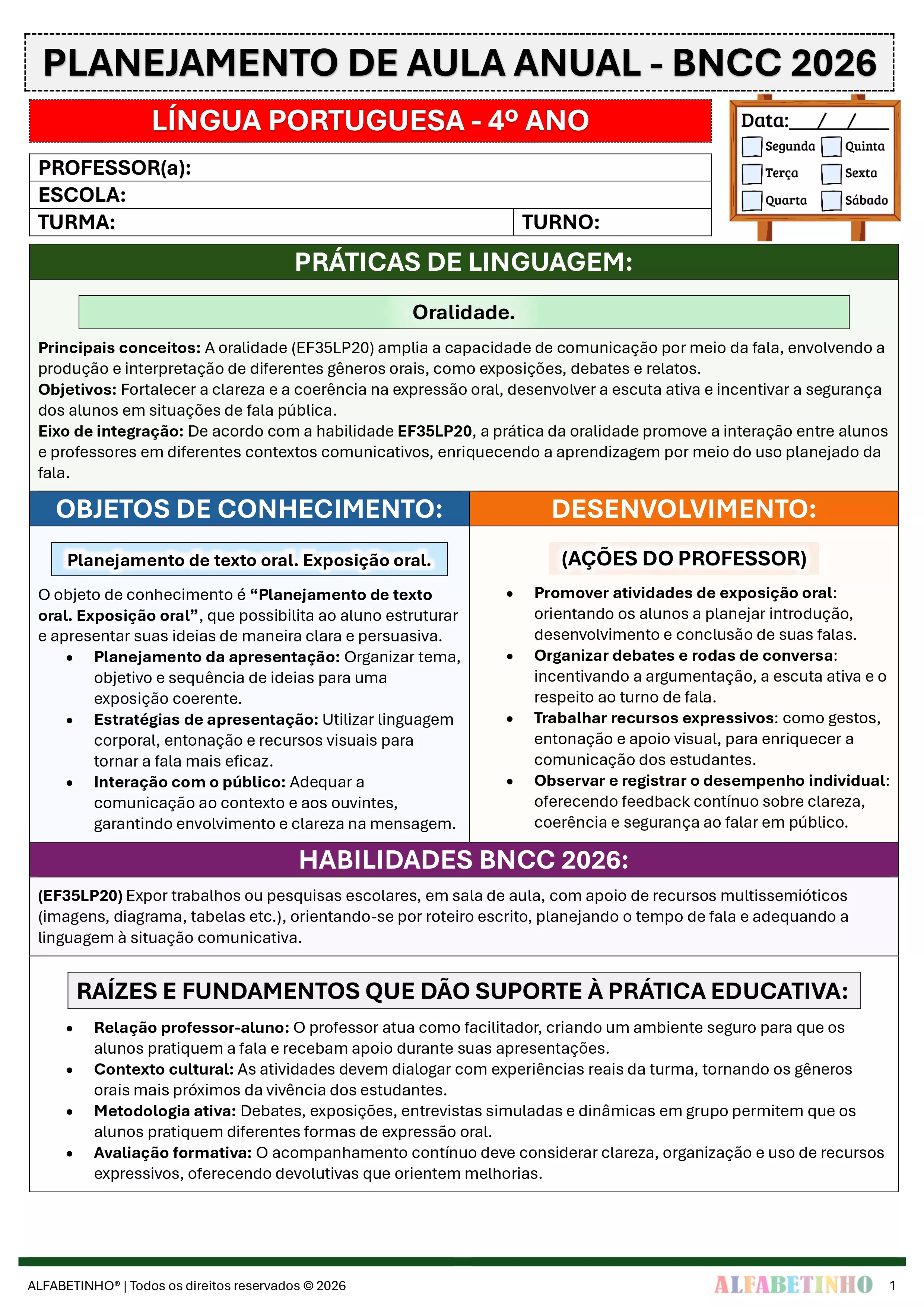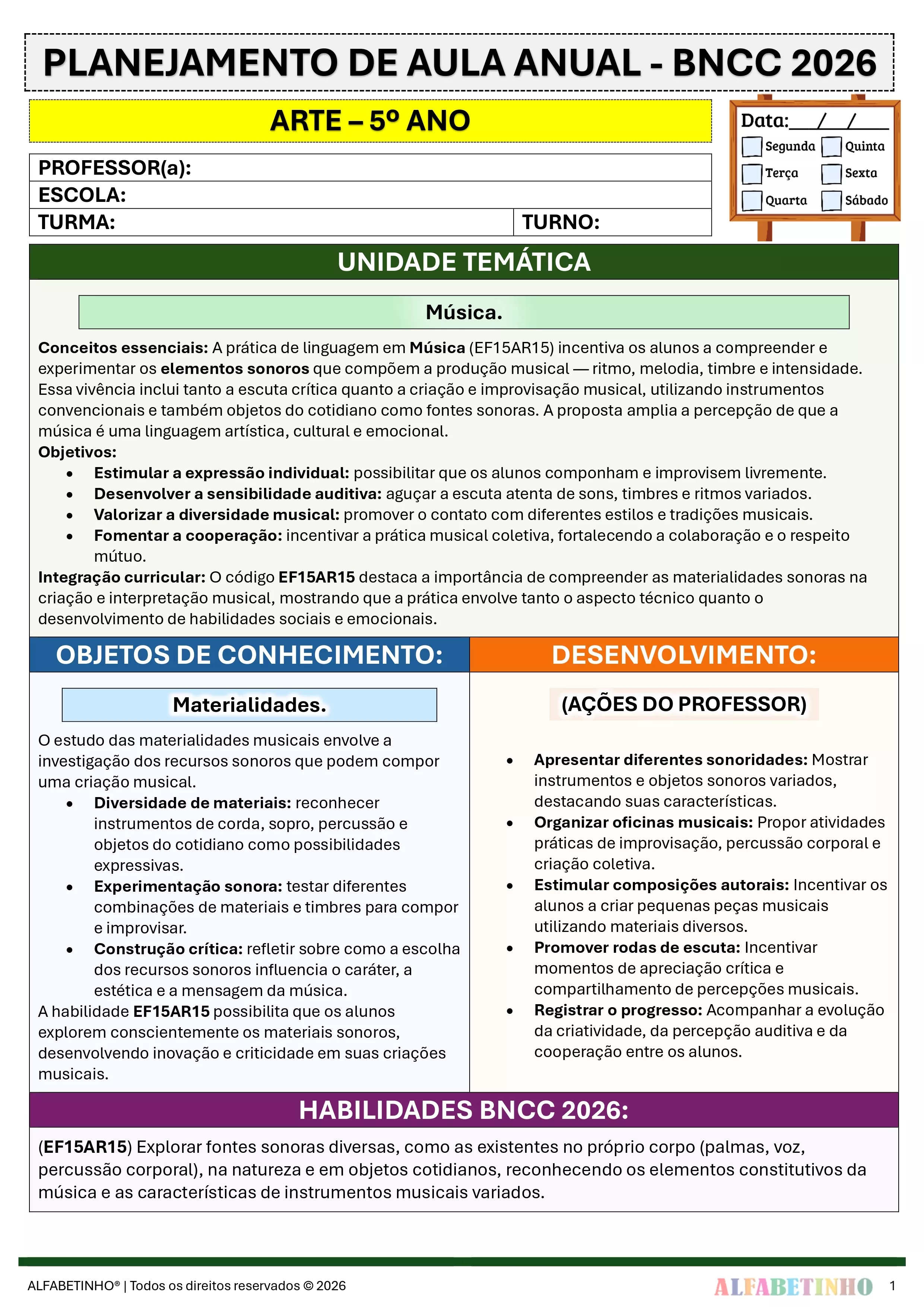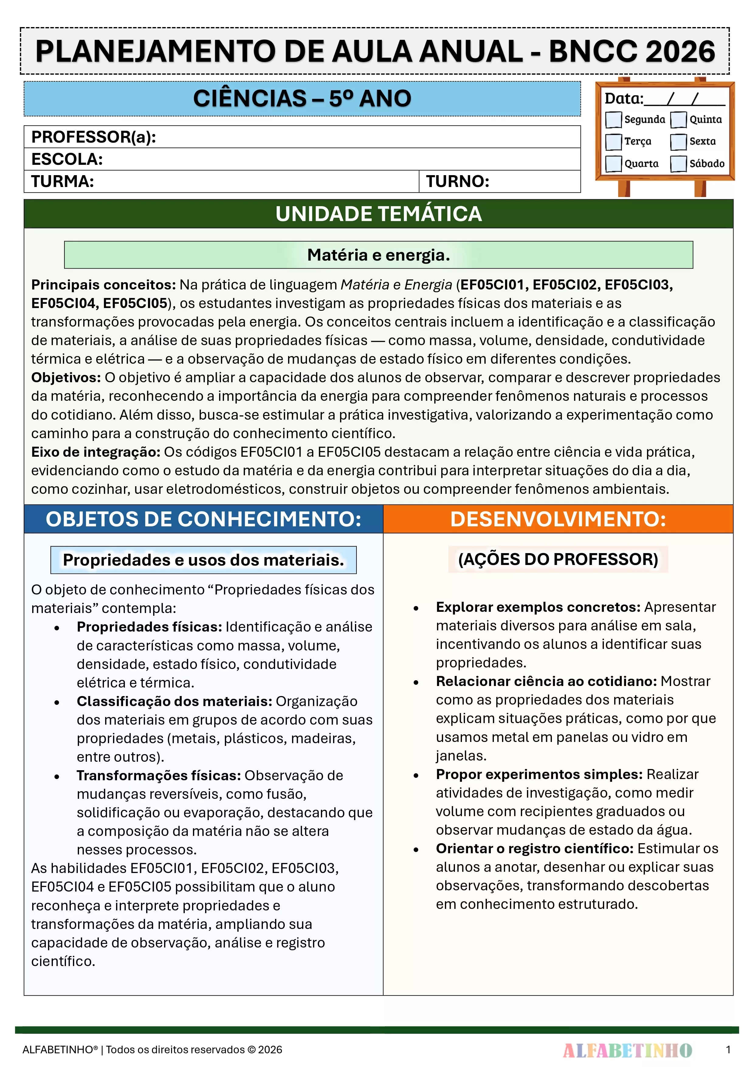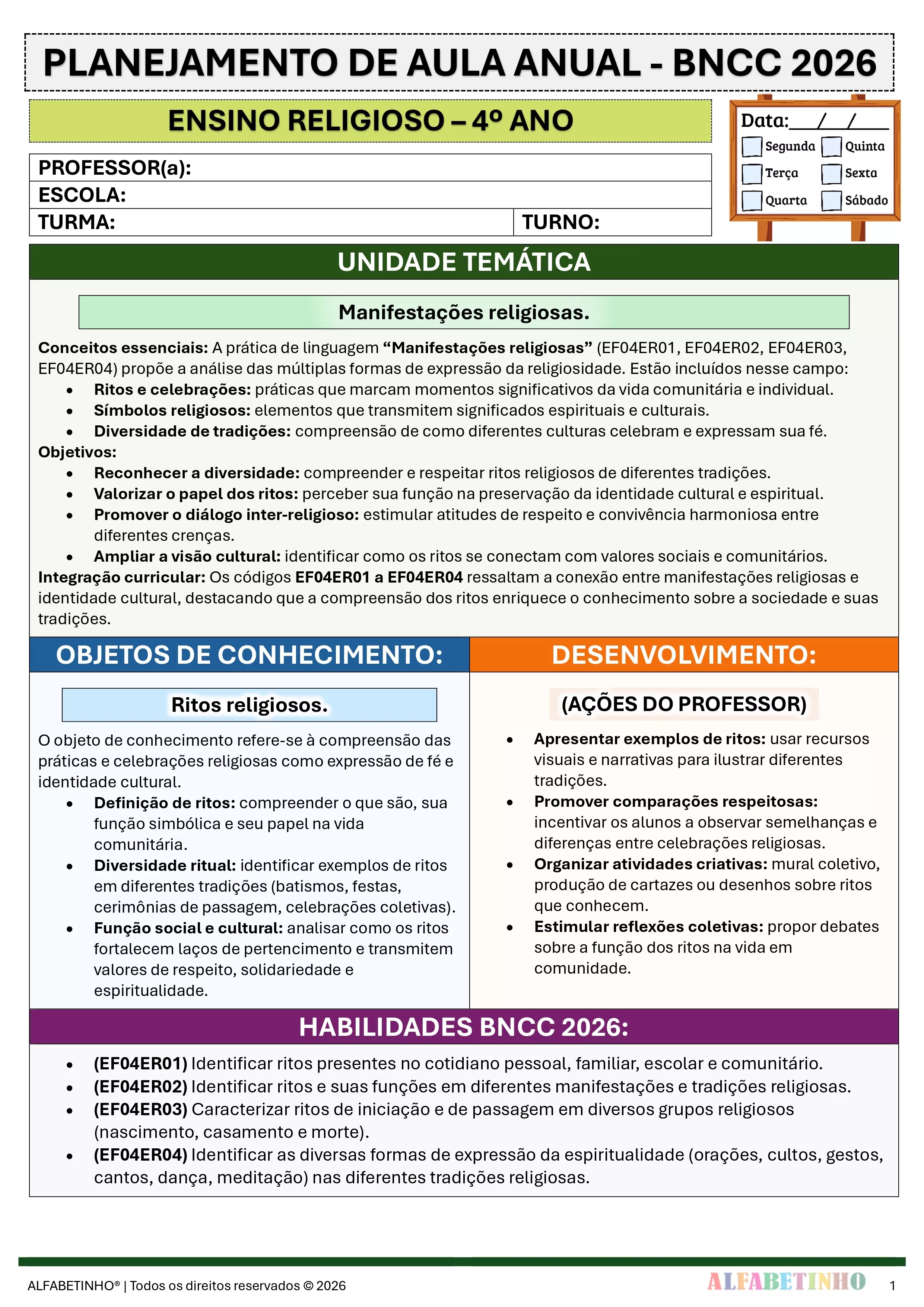 ✓ Planos Anuais e Bimestrais, prontos e editáveis em Word;