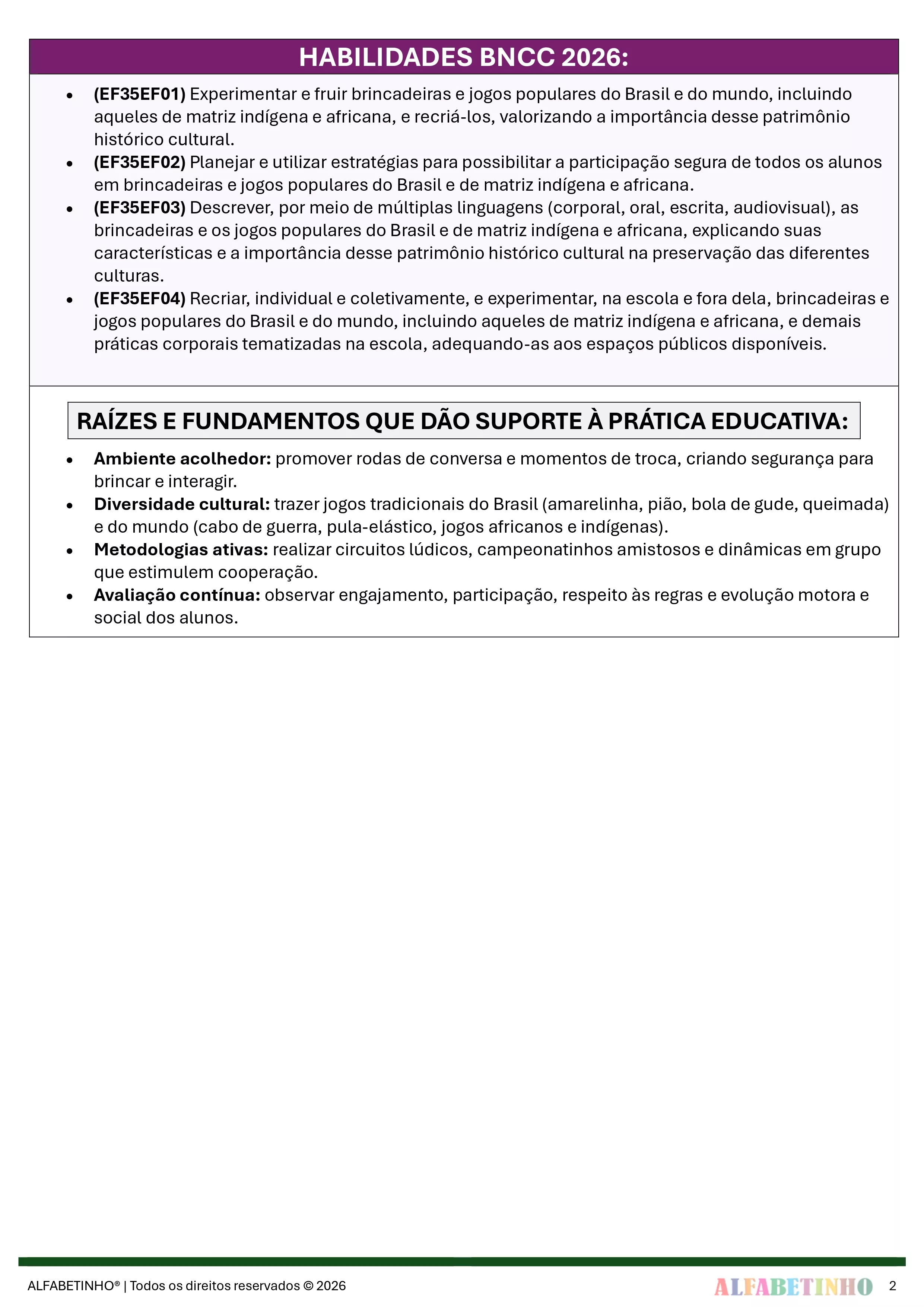 ✓ Procura atividades alinhadas com todos os Códigos da BNCC 2026;
