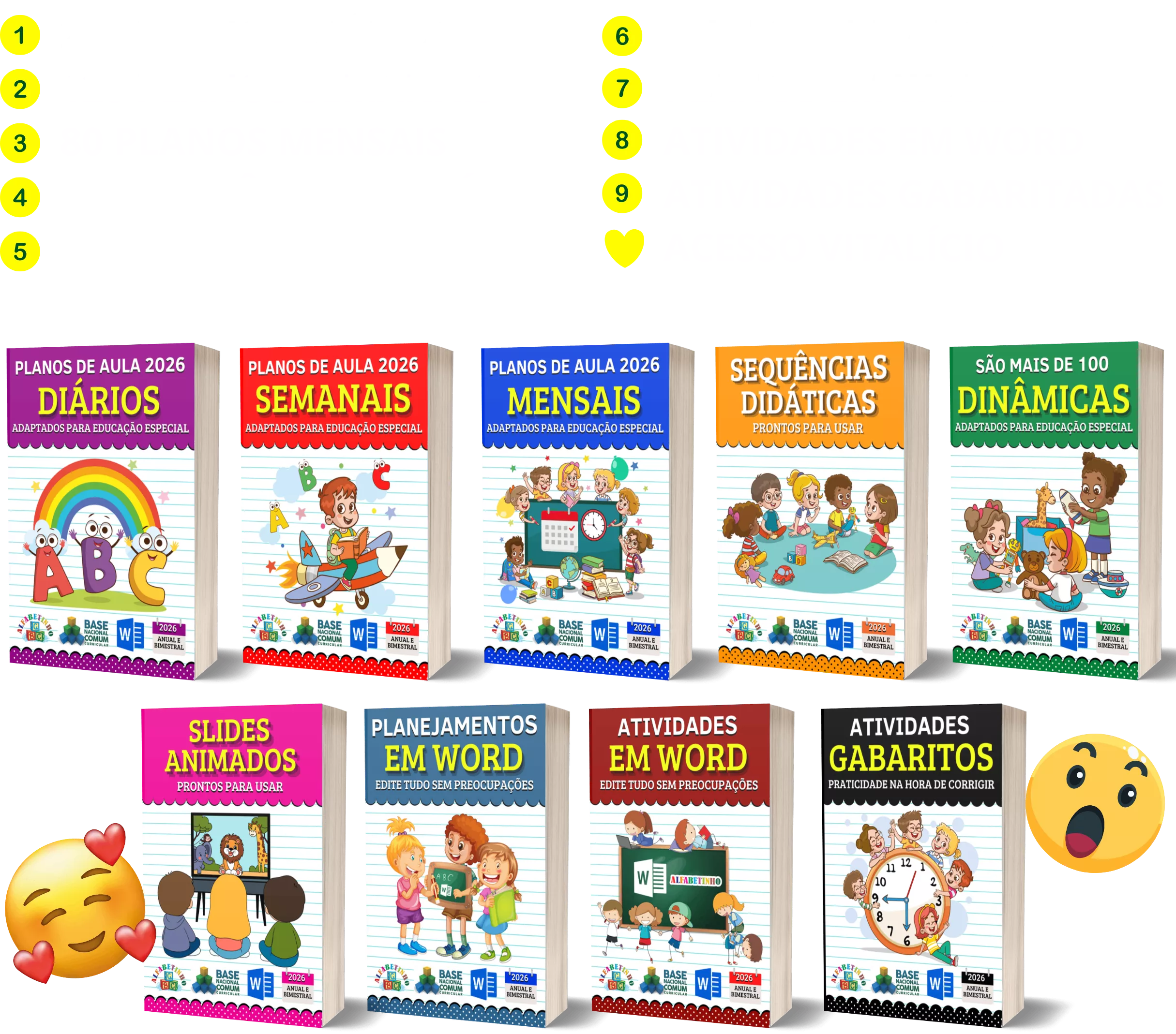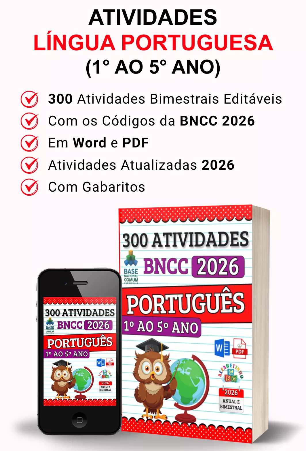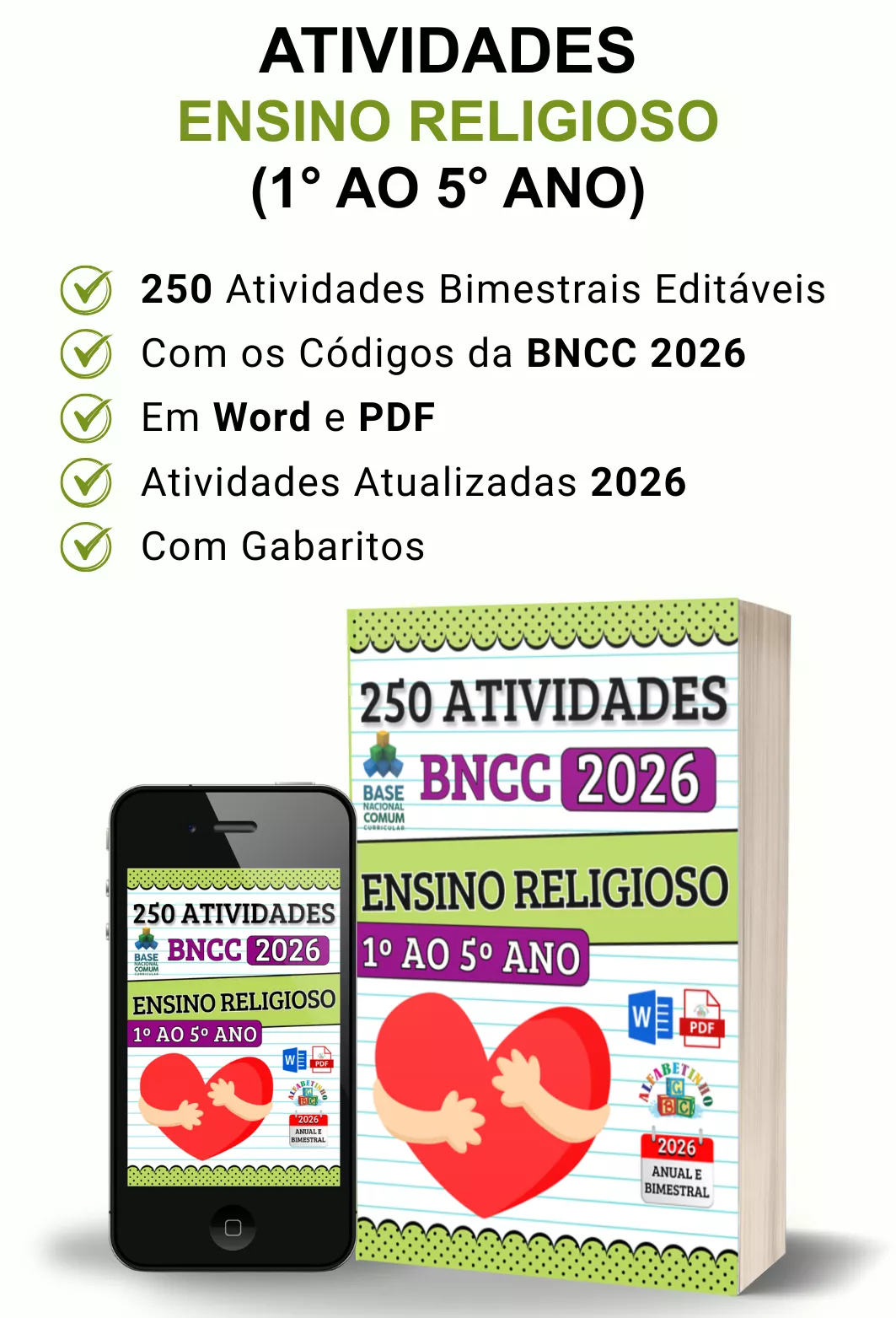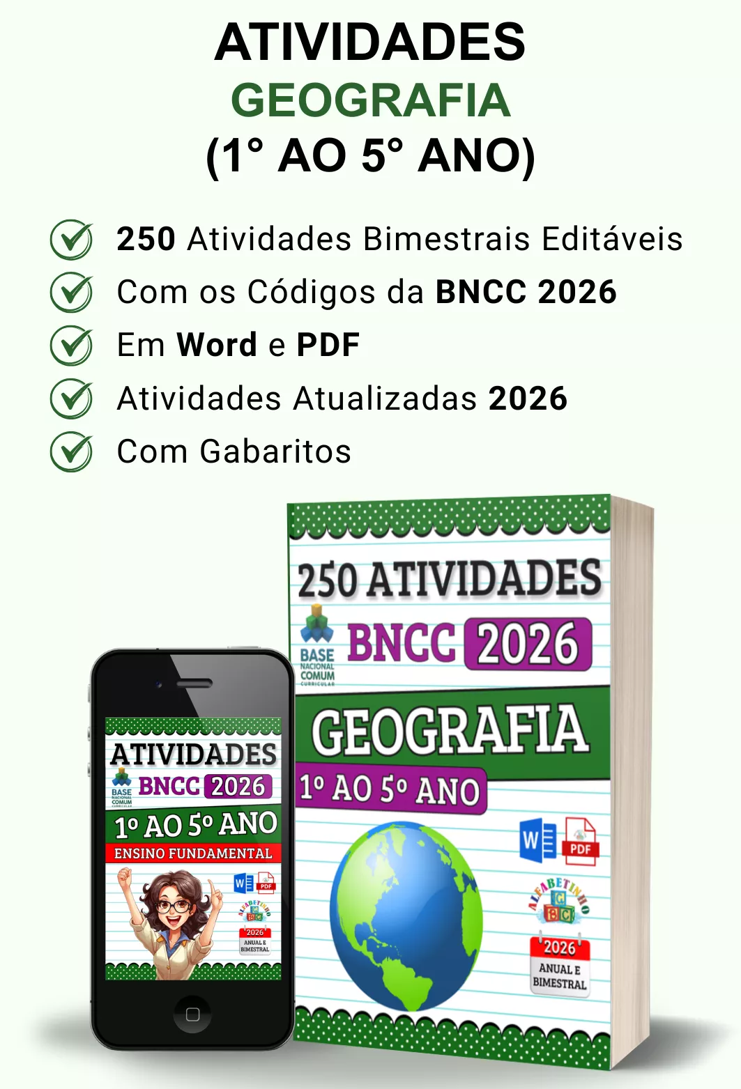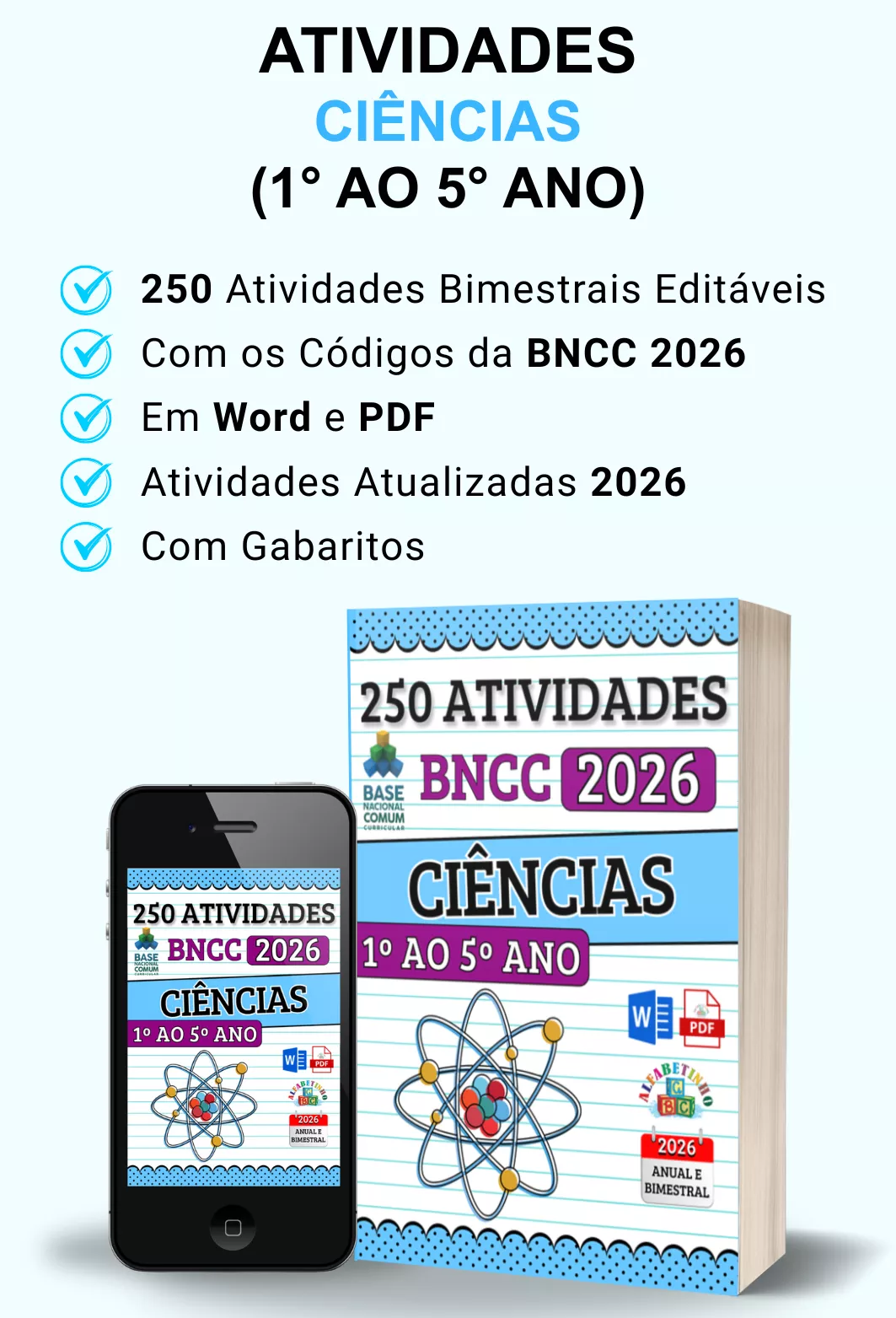 ✓ Mais de 2.000 atividades com gabaritos e alinhadas à BNCC 2026;