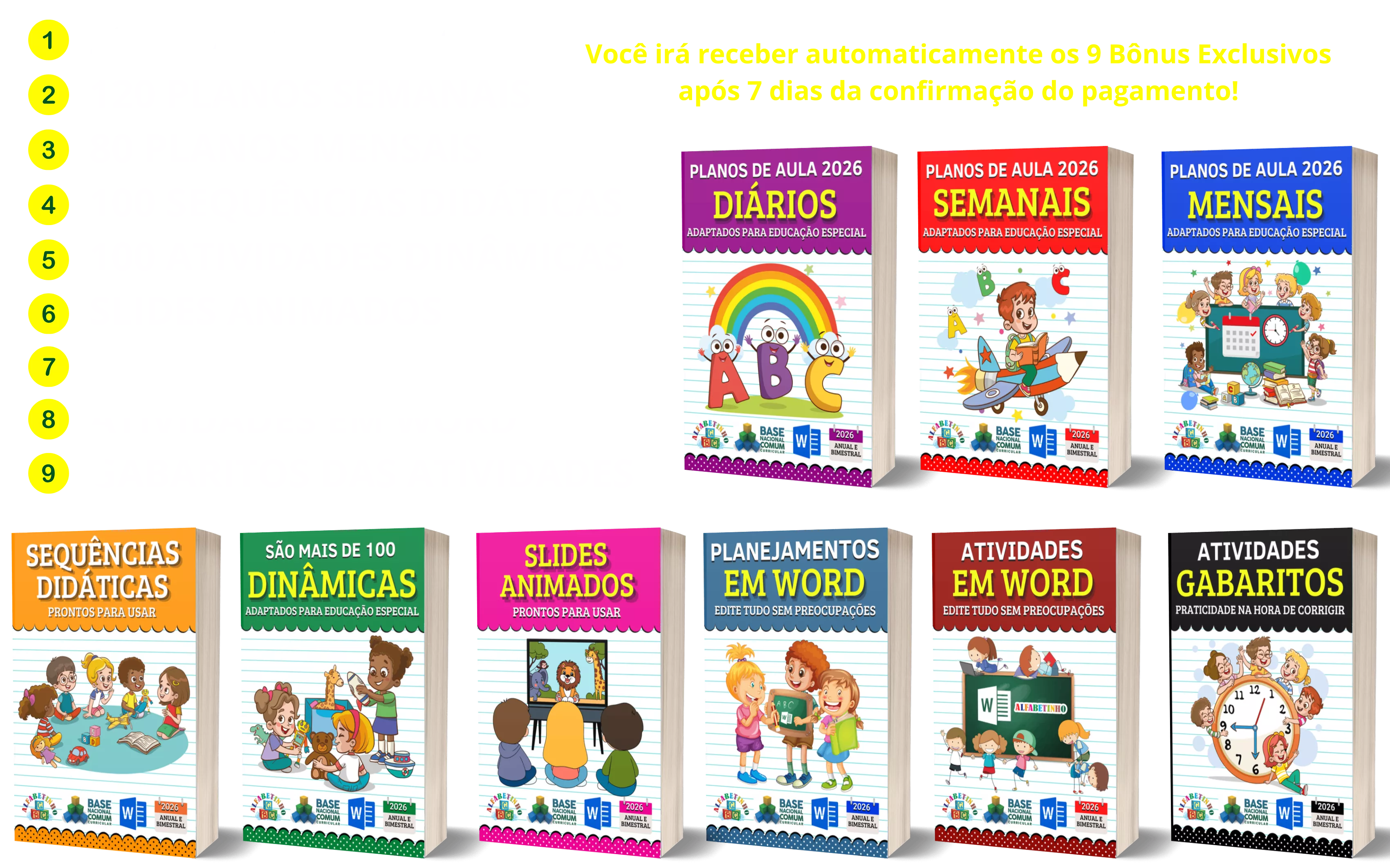 Você irá receber automaticamente os 9 Bônus Exclusivos após 7 dias da confirmação do pagamento!