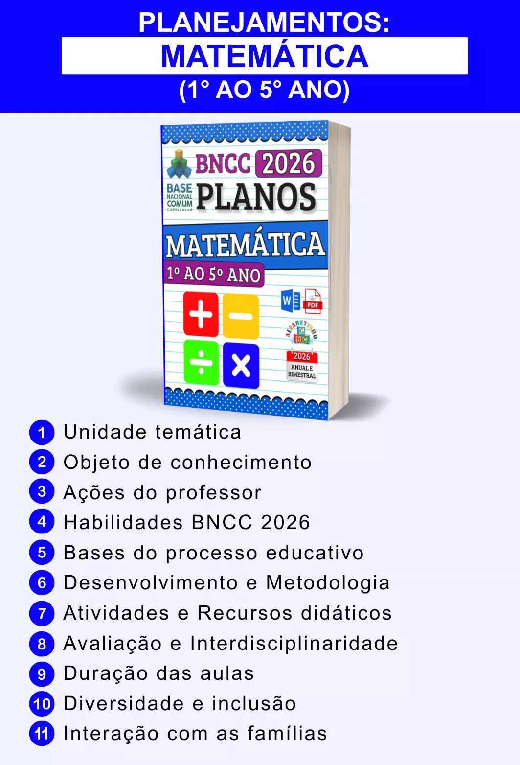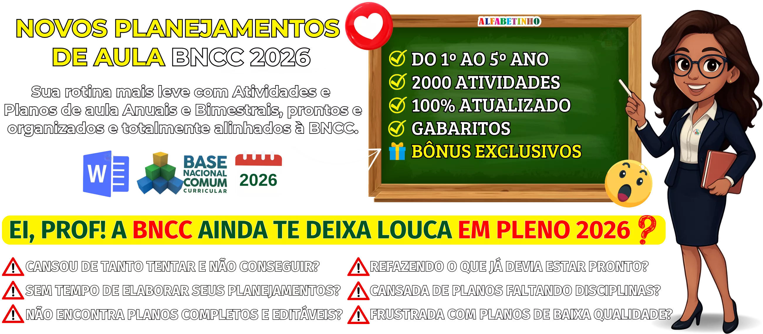 BNCC 2026, totalmente editáveis no Word e adaptáveis à sua realidade escolar. Praticidade, qualidade e inspiração para professores que amam ensinar!